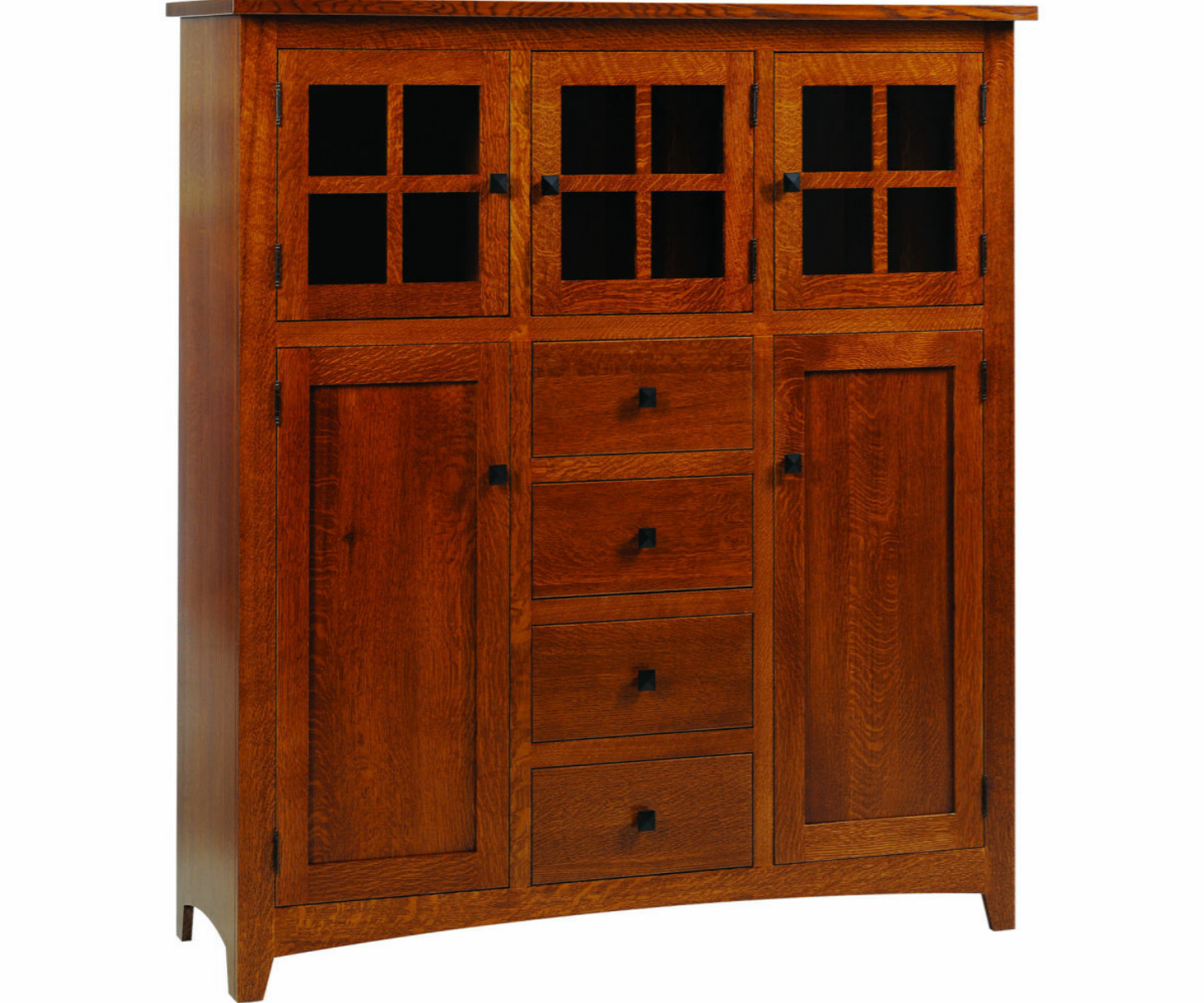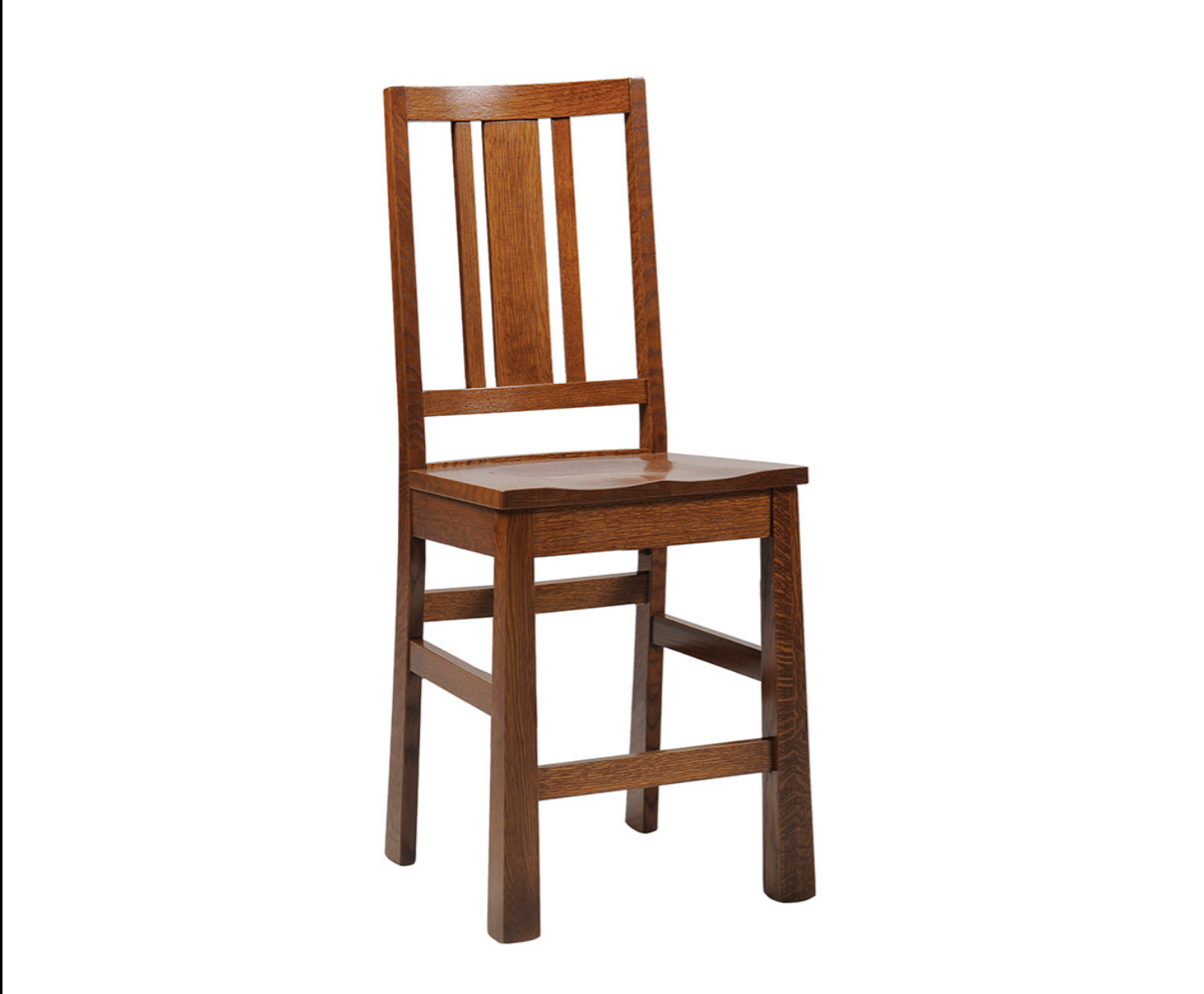 The Blakely Mission Dining Collection celebrates the enduring appeal of Arts and Crafts design with its sturdy quartersawn oak construction and iconic slatted details. The focal point is a versatile counter-height gathering table that features a unique storage base with beautiful mullion-accented doors, providing both functionality and architectural interest. Matching high-back chairs and a grand hutch complete the ensemble, showcasing the rich grain of the wood and traditional dark hardware for a look of grounded, timeless quality. This collection is an ideal choice for those who value heritage craftsmanship and a warm, inviting atmosphere for their dining space.