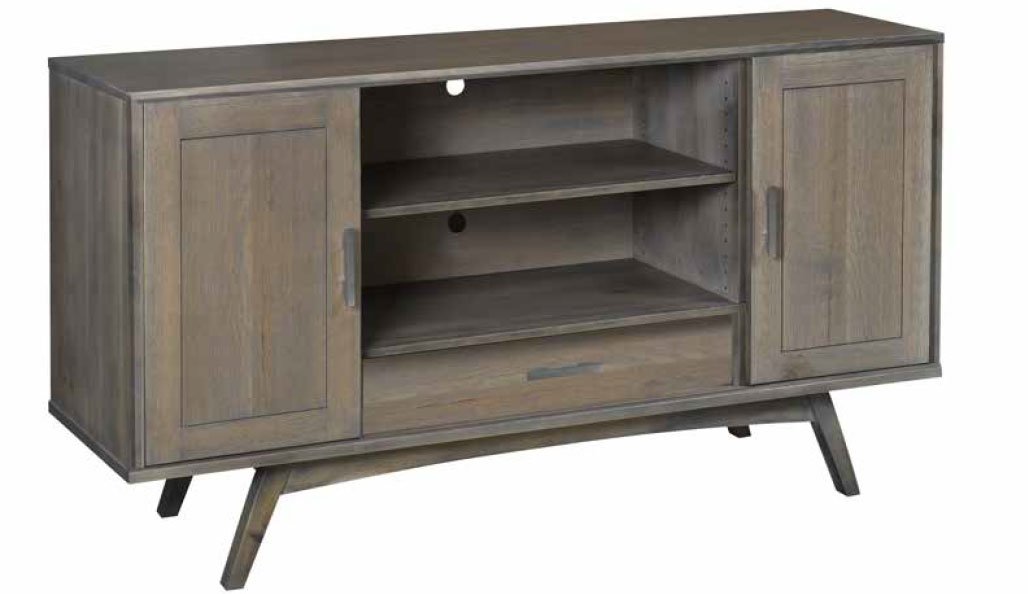This collection features: Coffee Table End Table Chairside Table Flat Wall TV Stand Available in multiple species and finishes. Shown in Rustic QSWO with SP-10 finish and 26134-G10 hardware.